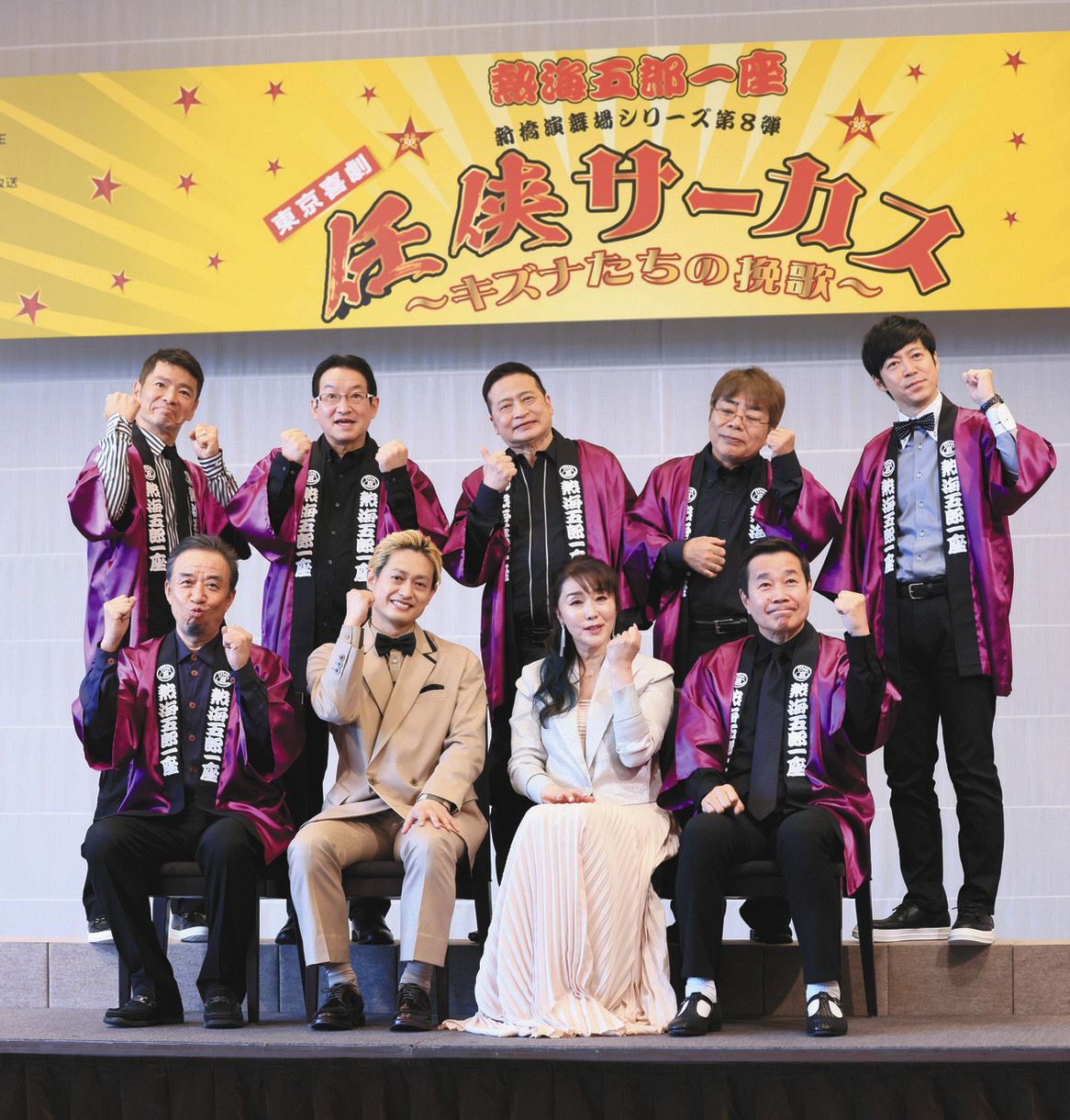 三宅裕司さん率いる「熱海五郎一座」新橋演舞場シリーズ第8弾 東京喜劇『任侠サーカス~キズナたちの挽歌~』」の初日を前にフォトコール・取材会が行われ、座長の三宅さんをはじめ、渡辺正行さん、ラサール石井さん、小倉久寛さん、春風亭昇太さん、東貴博さん、深沢邦之さん、浅野ゆう子さん、塚田僚一(A.B.C-Z)さんが登壇しました。