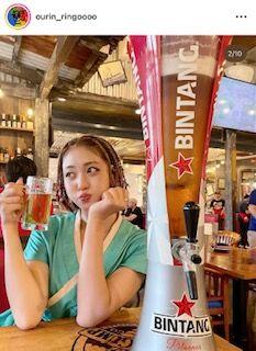 王林は「お正月バリ島行ってました」と報告し、オフショットを複数枚アップ。「サーフィンしてプールしてあとはずっとビールのんでさいこうだったよ こんな息抜きも大事だね」と絵文字付きでつづった。