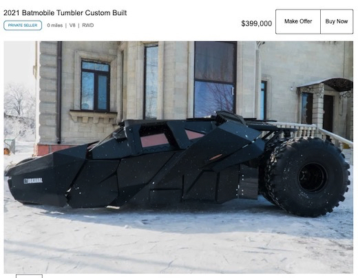 ダークヒーローの代名詞的な存在として世界中で支持を得ている「バットマン」が、映画「ダークナイト」シリーズで搭乗したビークル「タンブラー」の精巧なレプリカが売りに出されています。
