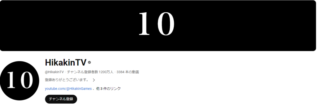 人気YouTuber「ヒカキン」さんのYouTubeチャンネルのアイコンやXのヘッダーが突如「10」という数字になりました。