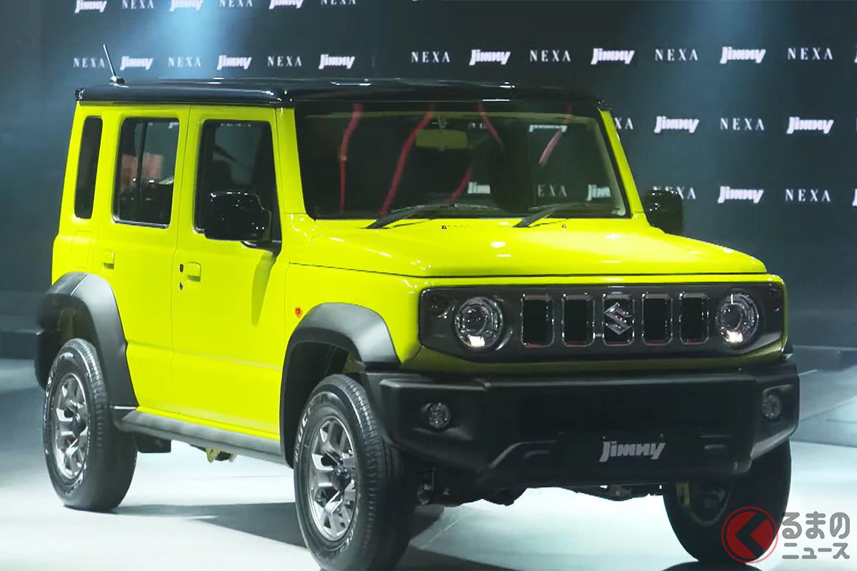 『スズキが新型「ジムニー5ドア」世界初公開! 存在感ある全長4m以下の「ロングボディ」が凄い! 1.5L仕様をインドでお披露目』の記事の要約