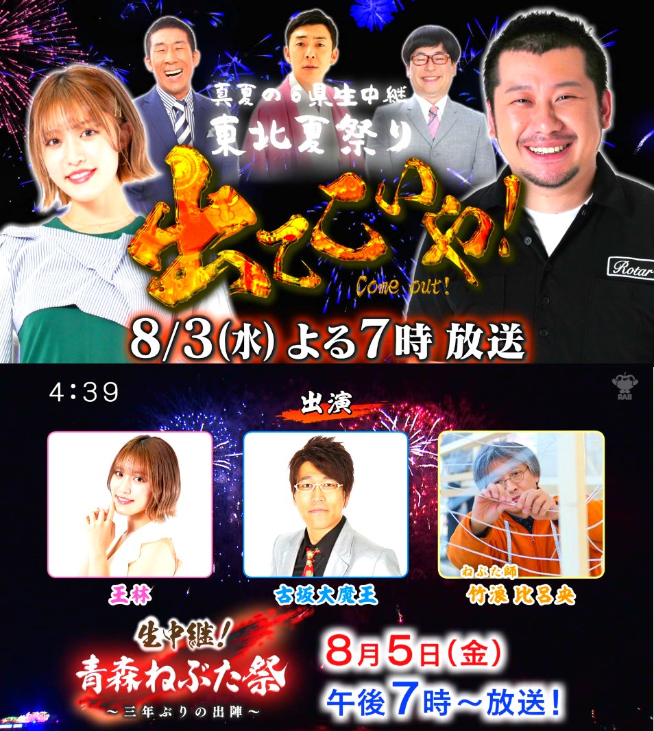 @peacefulh3青森ねぶた祭 全国中継!8月5日(金)20時よりBS11にて全国生中継📺ゲストに王林さん、古坂大魔王さんが生出演します。じゃわめぐね!(ゾクゾク、ざわめく)#王林 #古坂大魔王https://t.co/m2NoMlntia