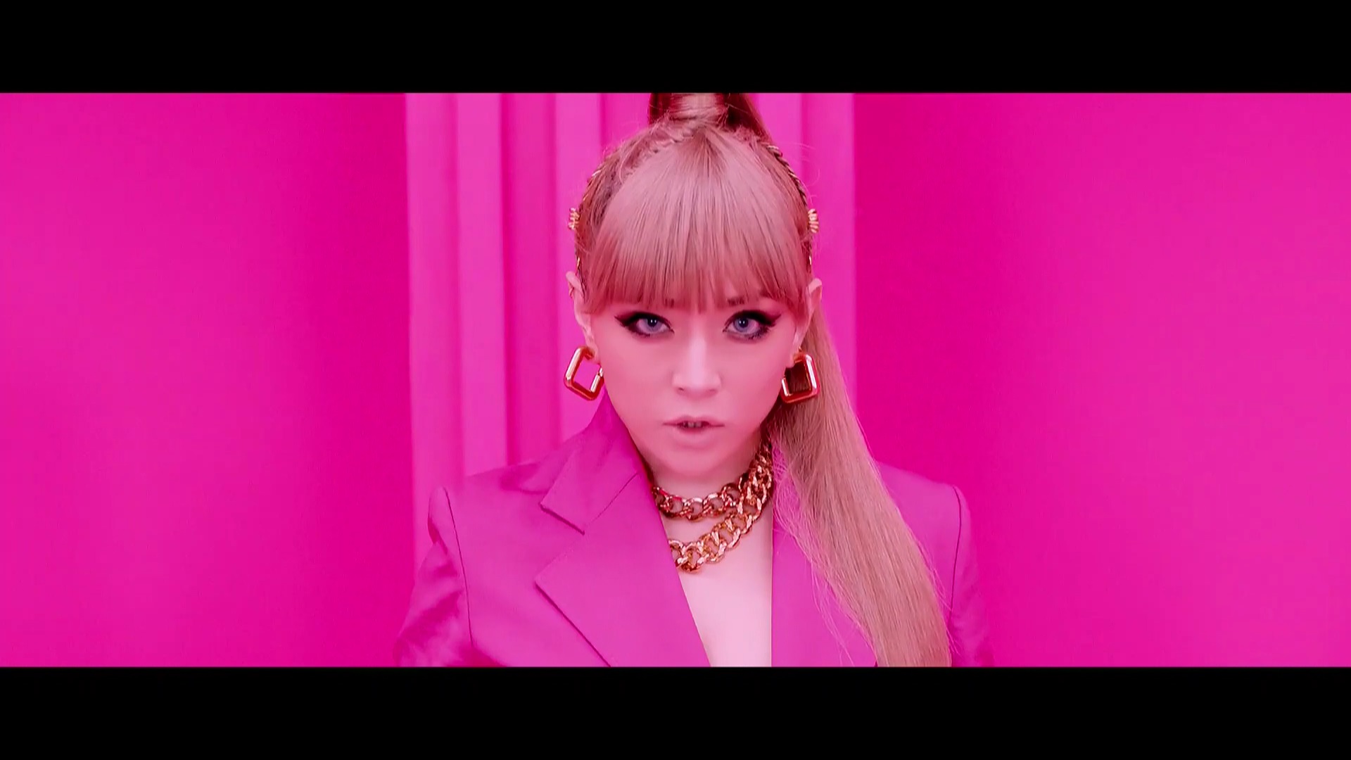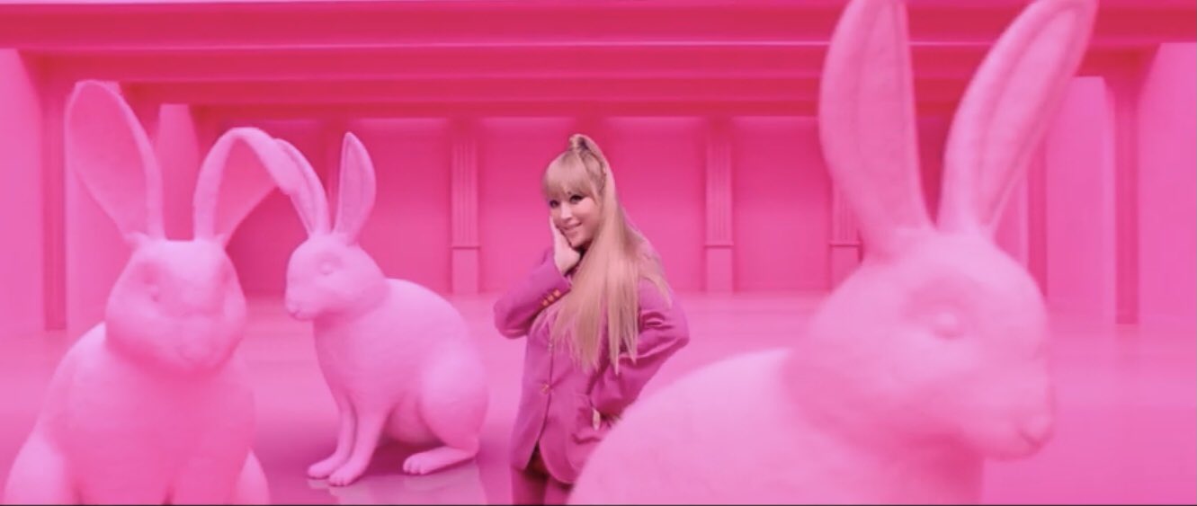 公開されたばかりのMVでは、360度ピンク一色な空間がすごいですね。