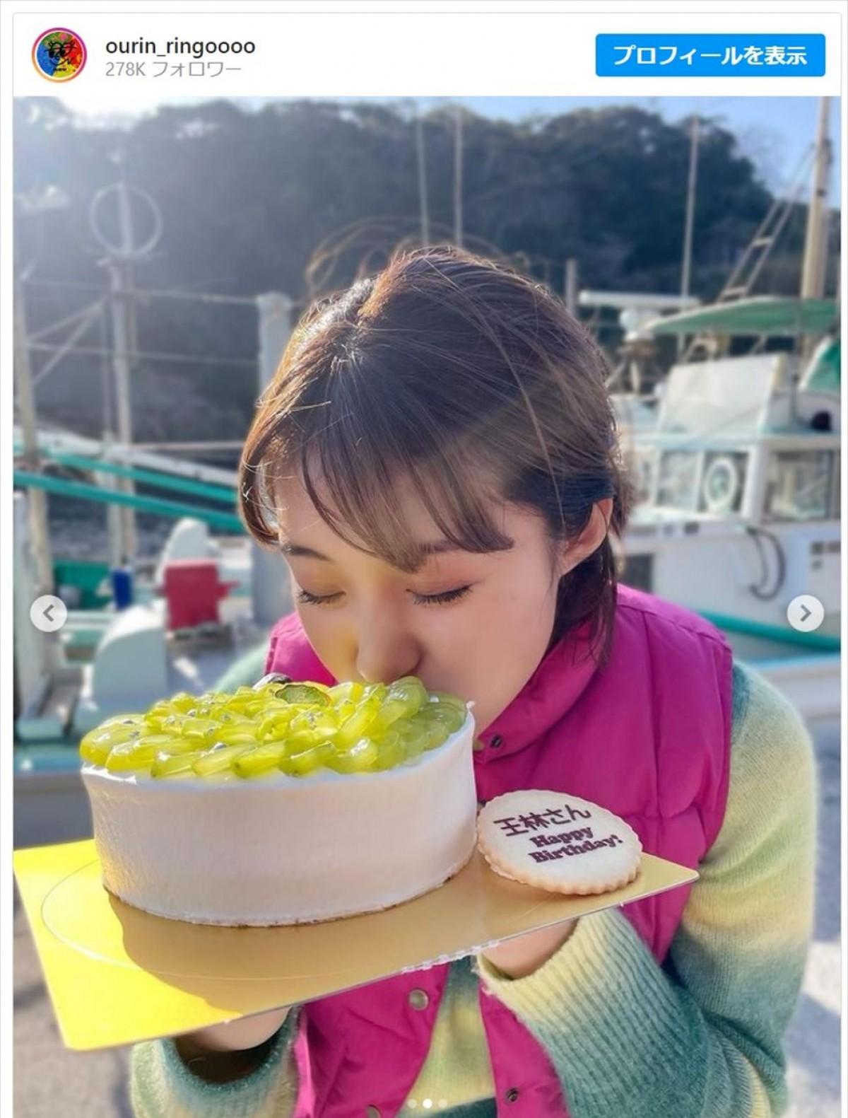 『王林、誕生日ケーキかぶりつきに反響「素敵な25歳」「めちゃくちゃ可愛い」』の記事の要約