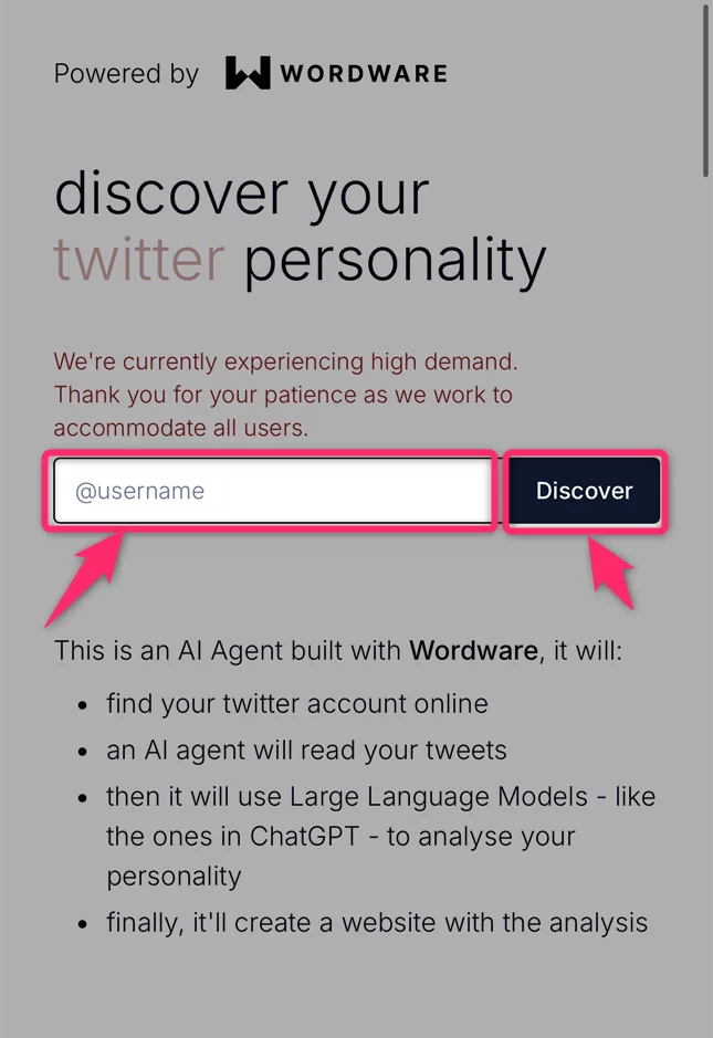 ユーザーネームを入力した後、「Discover」ボタンをクリックします。