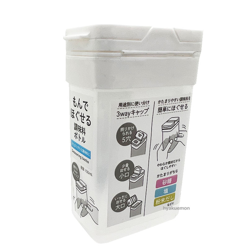 ダイソーで販売されている揉んでほぐせる調味料ストッカーは、固まりやすい砂糖や塩を容器に入れたまま簡単にもみほぐせるのが特徴です。
